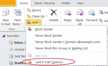 Exchange Email: How to disable Outlook’s automatic filtering to Junk E-Mail? |