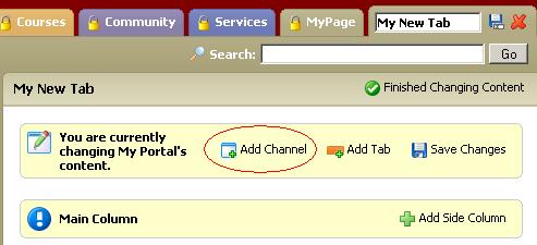 Channels (individual applications under myPortal) are developed by different departments or offices providing online services and information to user. When you first login to "myPortal", you will note that there are a number of preselected channels (e.g. the People / Department Search Channel) under different tabs (or pages) such as the Home tab page.