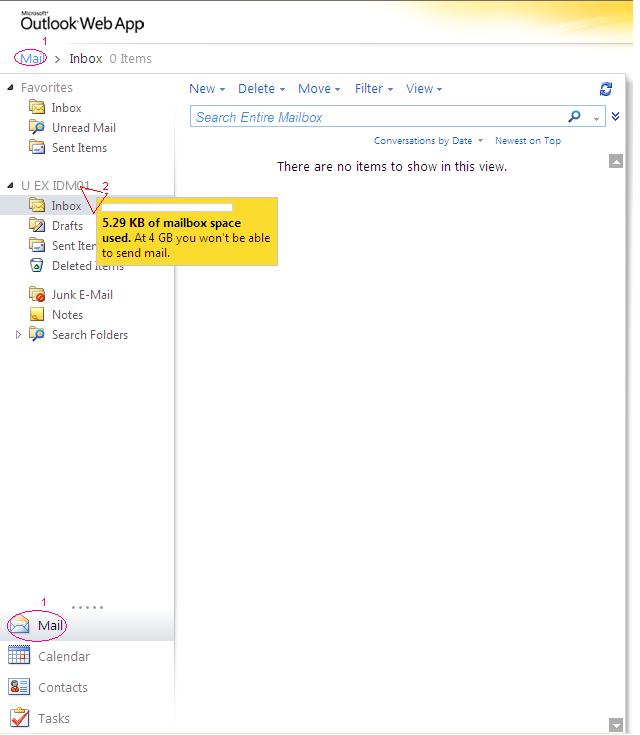 By default you are in Mail view after logged in (the word "Mail" displayed in top left corner). If it not, click Mail on the navigation bar which is located at the lower left of the window.