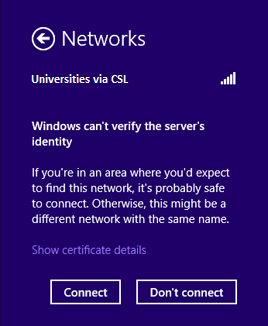 Setting up Windows 8 Device to Access CSL Wi-Fi Service |