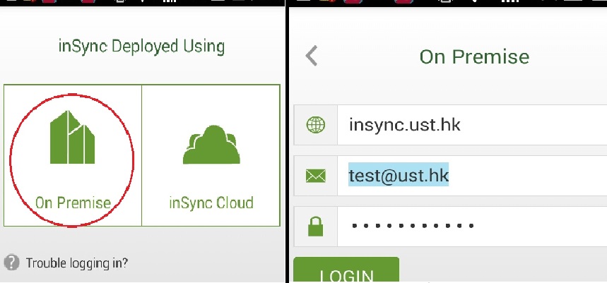 5. Enter Server URL, ITSC email ID (not email alias), password and then choose LOGIN.