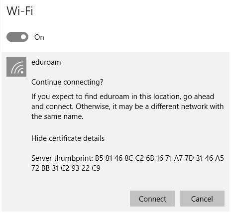 Congratulations! You have connected to eduroam! |