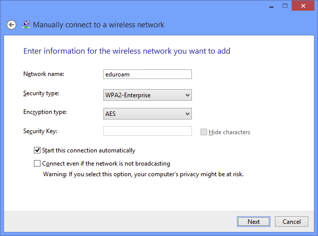Setting up Windows 8 Device to Access eduroam
