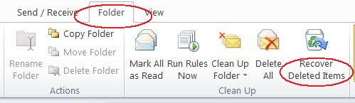 When you delete items (i.e., messages, folders, tasks, appointments, or contacts) using Microsoft Outlook or OWA, they move to the Deleted Items folder. You may retrieve them by opening the Deleted Items folder, locating the items, and then moving them to another folder.